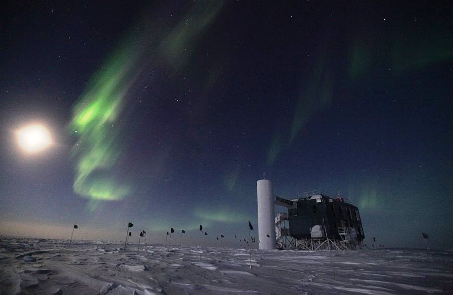 12. A lua e a aurora austral sobre o laboratório IceCube, na Estação Amundsen-Scott, em 24 de agosto de 2012. (Foto: National Science Foundation | Sven Lidstrom)